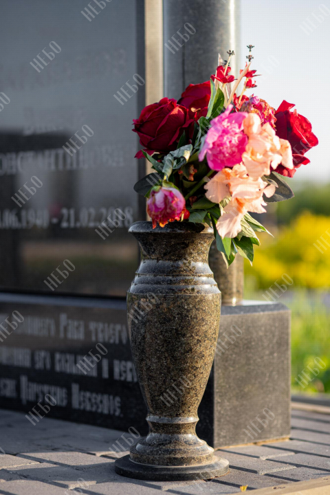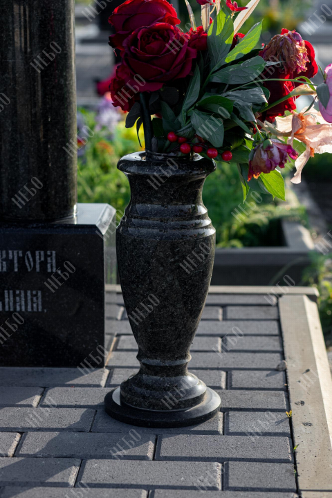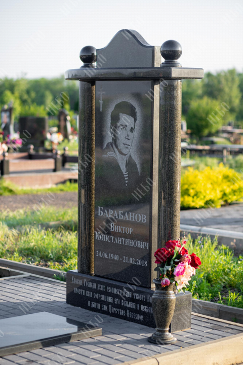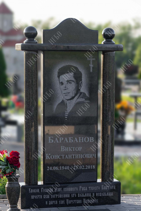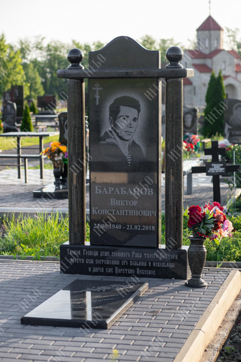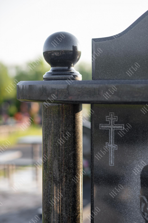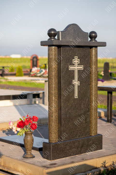 Христианский памятник с колоннами выглядит сдержанно и в то же время необычно. Такое ритуальное изделие будет привлекать к себе внимание и позволит достойно выразить дань уважения покойному. Памятник состоит из вертикальной стелы черного насыщенного цвета с изогнутым верхом, двух симметричных колонн в классическом стиле по бокам плиты и вазы у основания. Закрытое лаконичное надгробие отлично дополняет другие составляющие ритуального изделия и придает ему практичности, ведь за таким памятником не потребуется особый уход. Формы и размеры ритуального изделия проработаны в соответствии с имеющейся нагрузкой и грунтом на выбранном кладбище, что гарантирует памятнику долговечность и исключает возможные искажения.