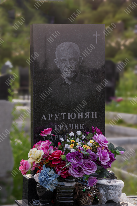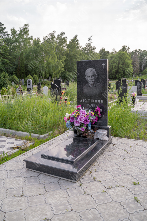 Прямой памятник выполнен в строгом лаконичном стиле с использованием четких геометрических линий. Черный цвет и прямоугольные формы стелы и надгробия являются классической комбинацией, которая часто используется при изготовлении памятников. Закрытое гранитное надгробие упрощает уход за ритуальным изделием и позволяет расположить памятную надпись, сделав на ней акцент. При изготовлении памятника специалисты тщательно прорабатывают соотношение форм, размеров и нагрузку, чтобы исключить деформации и искажения изделия со временем.