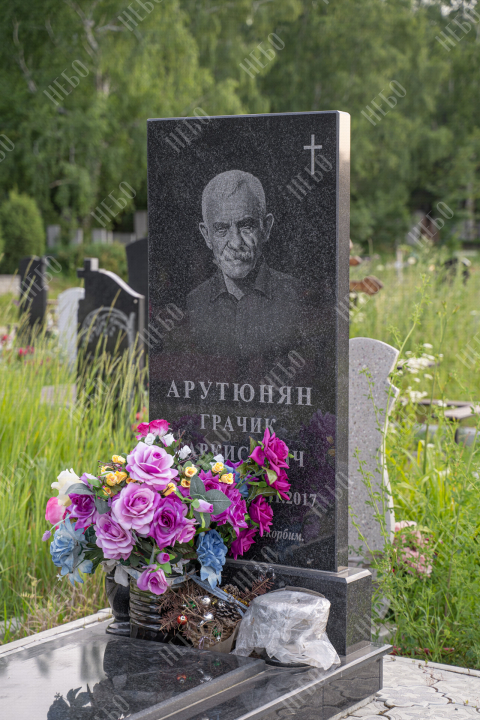 Для изготовления памятника использован гранит карельский габбро-диабаз. Это горная порода, отличающаяся прочностью и повышенной износостойкостью. Карельский габбро-диабаз устойчив к влаге и перепадам температур. Его плотность выше, чем у мрамора, поэтому именно его использовали при воздвижении вековых колонн исторических зданий. Гранитный памятник габбро-диабаз не требует особого ухода, обладает насыщенным черным цветом, что делает внешний вид памятника благородным и лаконичным.