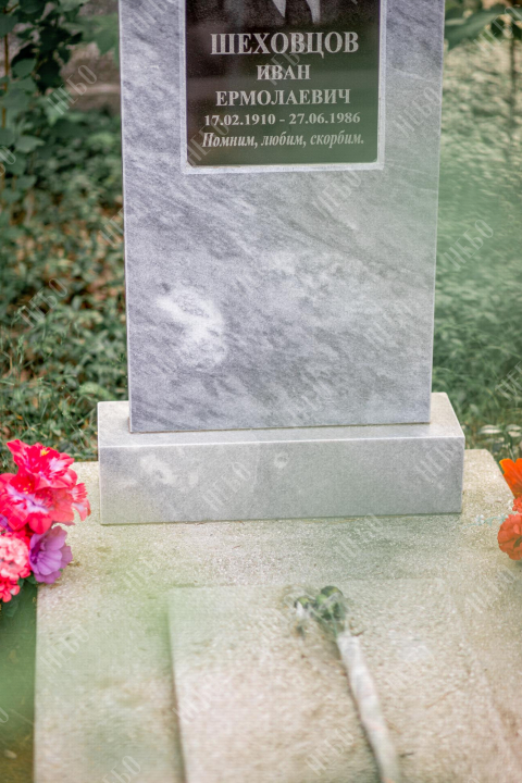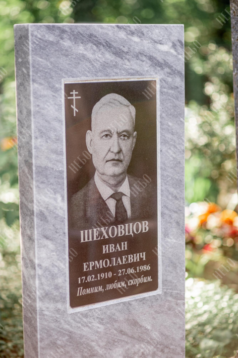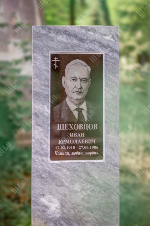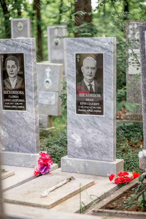 Фото на ритуальном изделии изготовлено методом гравировки алмазными иглами на черном граните. Далее фотография вставлена в памятник из выбранного материала, создавая эффект контрастности. Такой способ вставки изображения применяется в случае изготовления памятника из материалов светлых, серых, коричневых и других оттенков, гарантируя фотографии четкость и наилучшее качество, а готовому изделию долговечность. Благодаря использованию технологии гравировки на граните, фото не потускнеет со временем, не исказится и сохранит первозданный вид десятки лет.