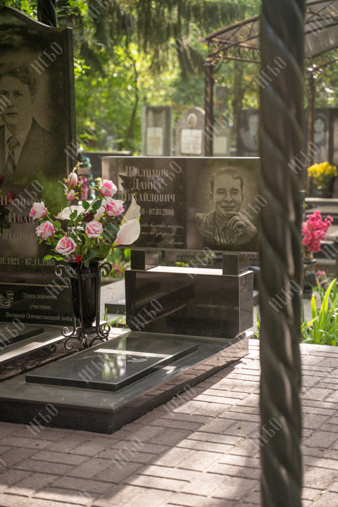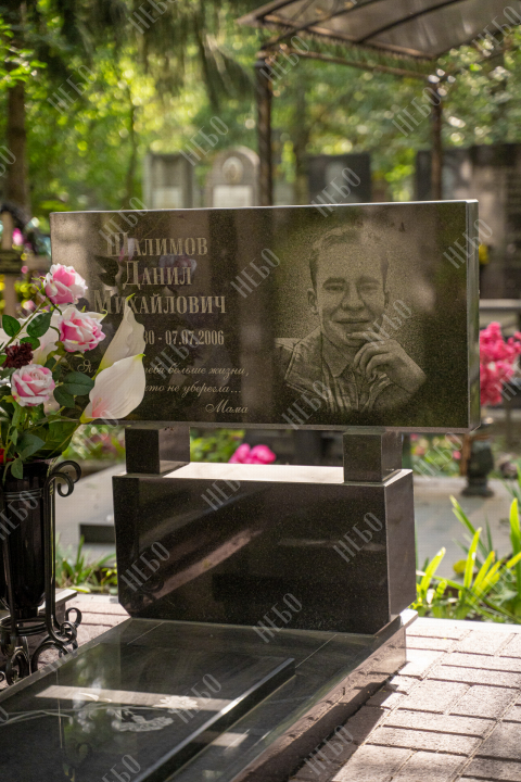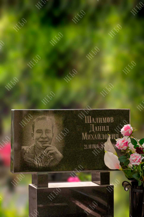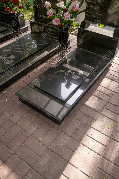 Горизонтальный памятник с кованой вазой и закрытым надгробием. Невысокая надгробная стела прямоугольной формы содержит фотографию усопшего и информацию о нем. Она отлично сочетается с закрытым гранитным надгробием. Такое решение является практичным и значительно упрощает уход за ритуальным изделием. Размеры памятника тщательно проработаны специалистами, что гарантирует конструкции долговечность и надежность.