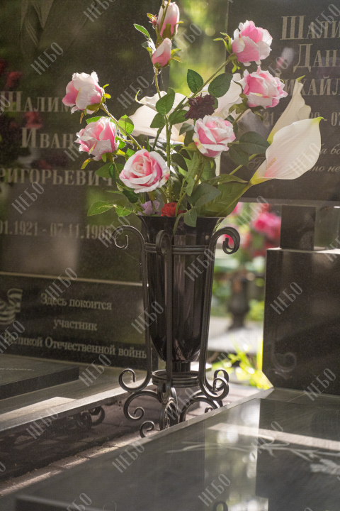 Горизонтальный памятник с кованой вазой и закрытым надгробием, заказать в Дубне.
